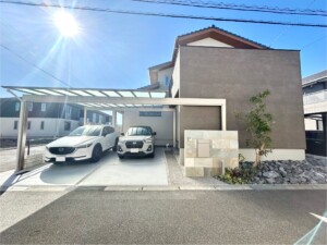 お車の出入りや、アプローチ部分に干渉する事なく、スッキリとした見た目で使いやすい形となりました✨